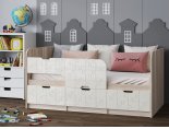 Кровать детская "Юниор-9" 0,8*1,6 м - Белый глянец / Ясень шимо светлый (левый)
