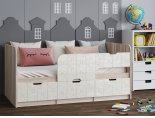 Кровать детская "Юниор-9" 0,8*1,6 м - Белый глянец / Ясень шимо светлый (правый)