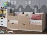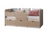 Кровать детская "Юниор-9" 0,8*1,8 м - Латте глянец / Ясень шимо светлый (левый)