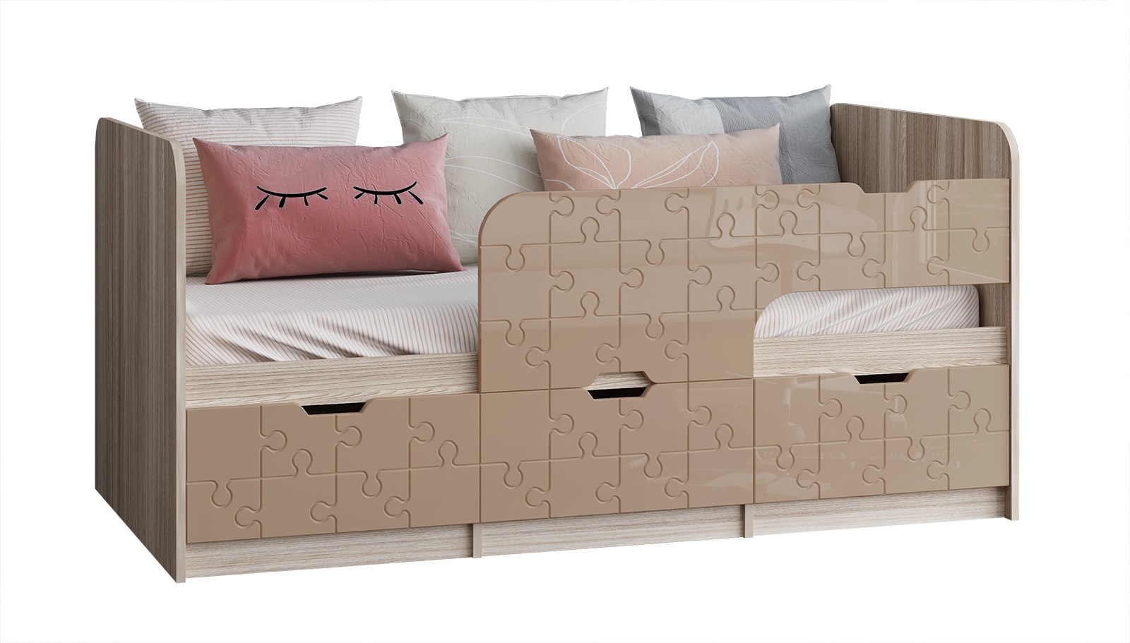 Кровать детская "Юниор-9" 0,8*1,8 м - Латте глянец / Ясень шимо светлый (правый)
