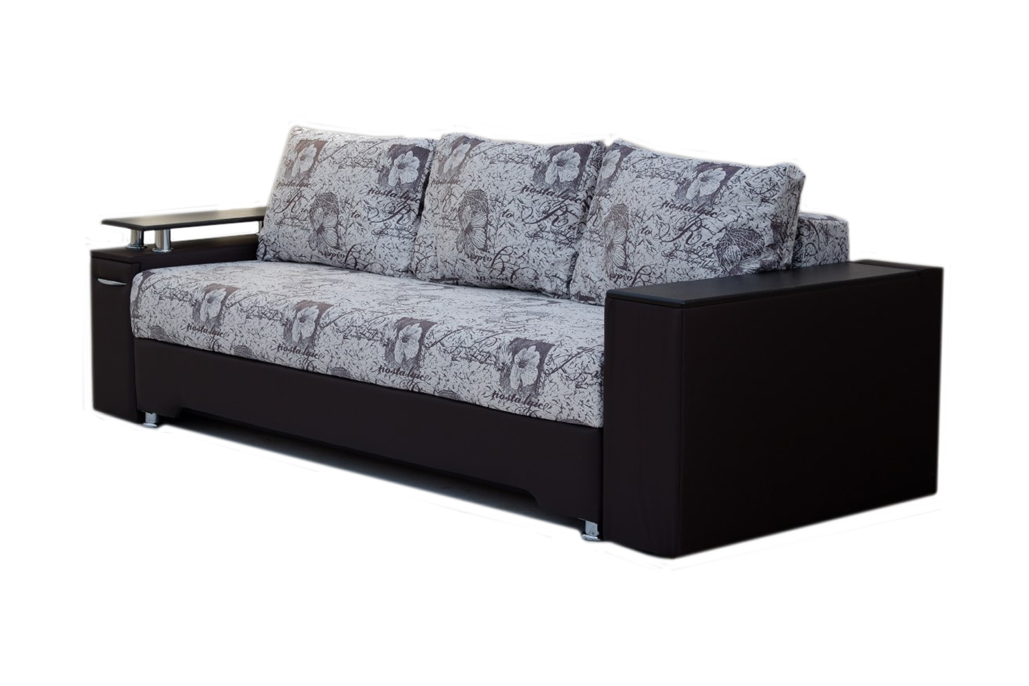 Этот диван содержит в себе маленький секрет: потяните за один из его подлокотников, и Вам откроется выдвижной бар для бутылок. Поверхность подлокотника оборудована специальной полкой, на которую удобно ставить бокал и бутылку.