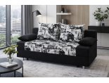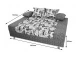 Спинка дивана декорирована мягкими подушками, что повышает удобство расположения на нем. Под сиденьем располагается вместительный ящик для хранения постельного белья.