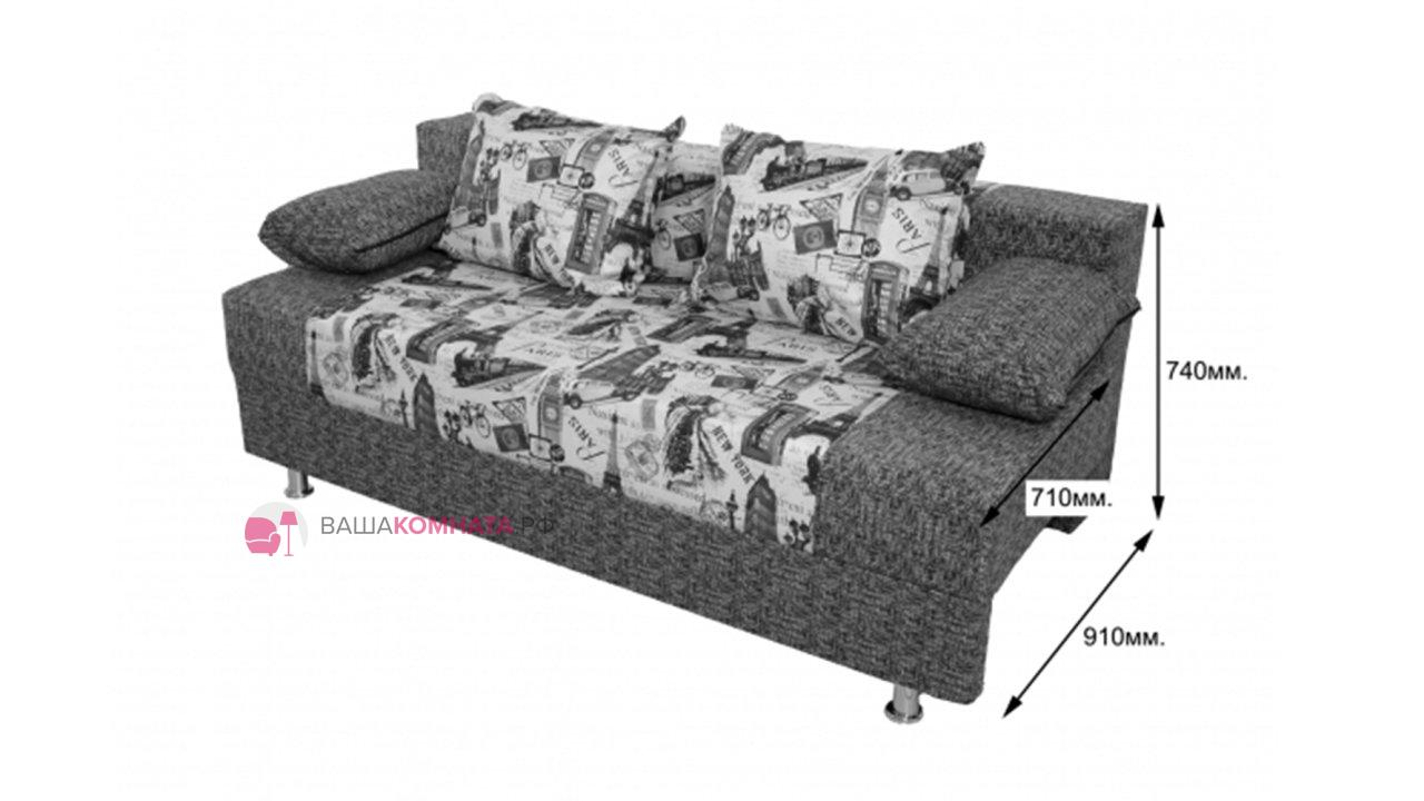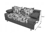 Измерения дивана: ширина 1850 мм, высота 740 мм, глубина 910 мм. 3 посадочных места позволяют с комфортом устроиться нескольким людям. В разобранном состоянии диван становится полноразмерной кроватью с местом для сна 1400x1850 мм.