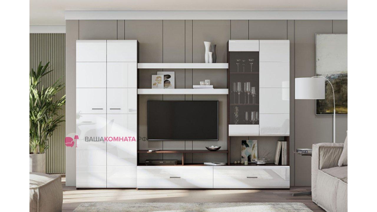 Гостиная "Флора" (МГС 7) исп.1 - Дуб Венге / Белый глянец