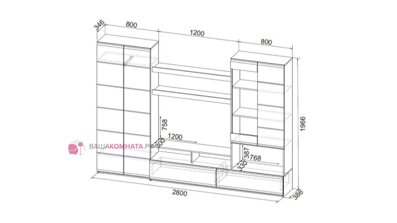 Габаритные размеры изделия (ШхВхГ) 2800х1966х386 мм