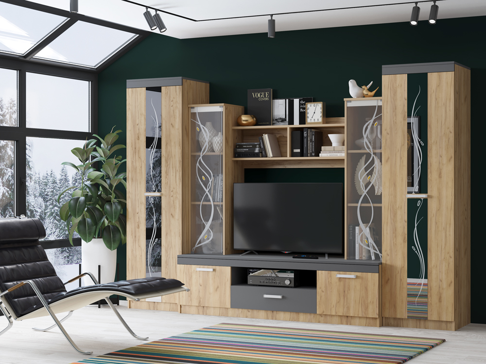 Гостиная "Гамма-2" - Дуб крафт золотой / Графит