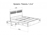 Кровать "НИКОЛЬ" 1,4*2,0 м с ящиками - Ясень Шимо / Лиственница темная