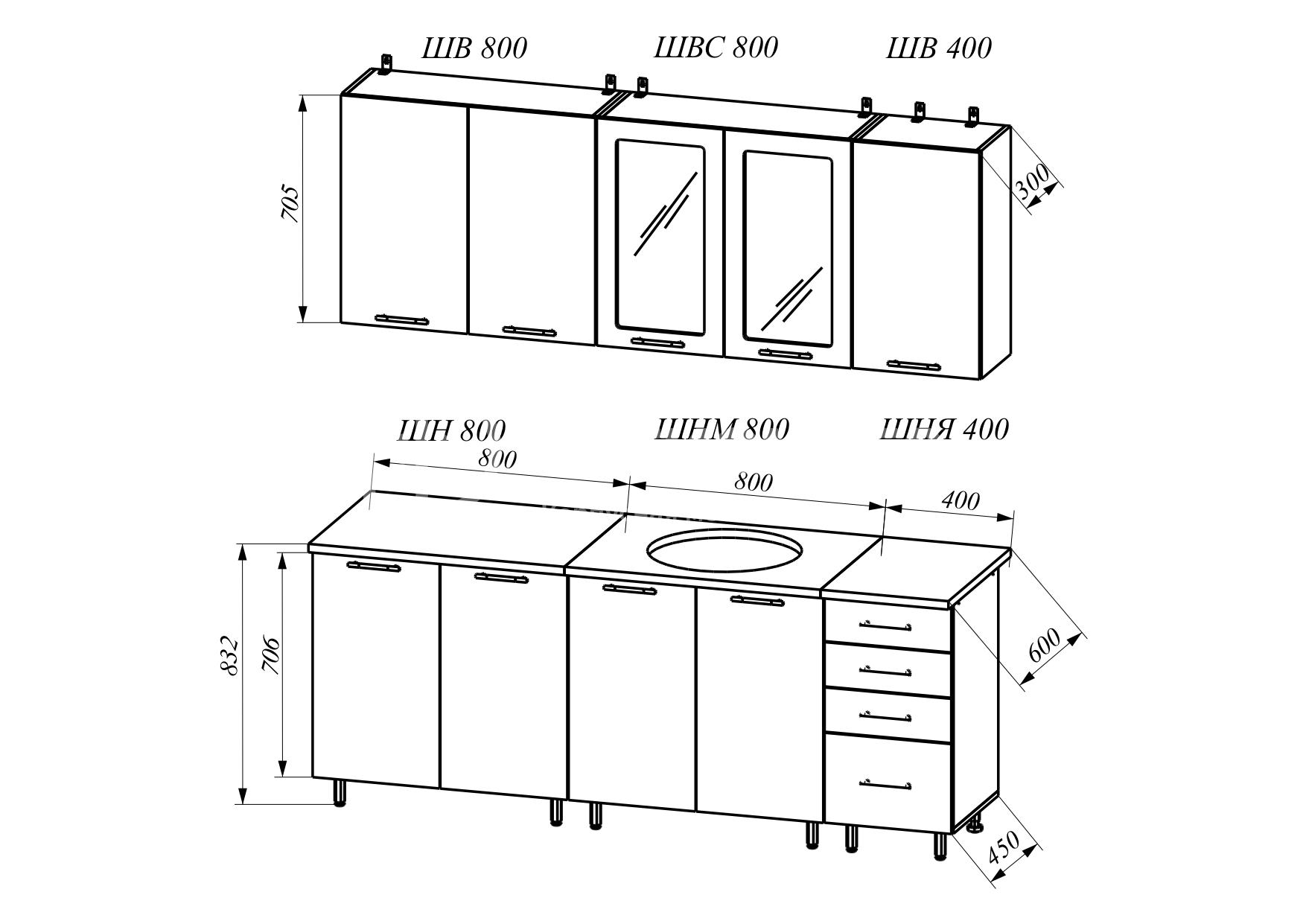 - ШНМ 800 под мойку (ШхВхГ: 800х706х450 мм)