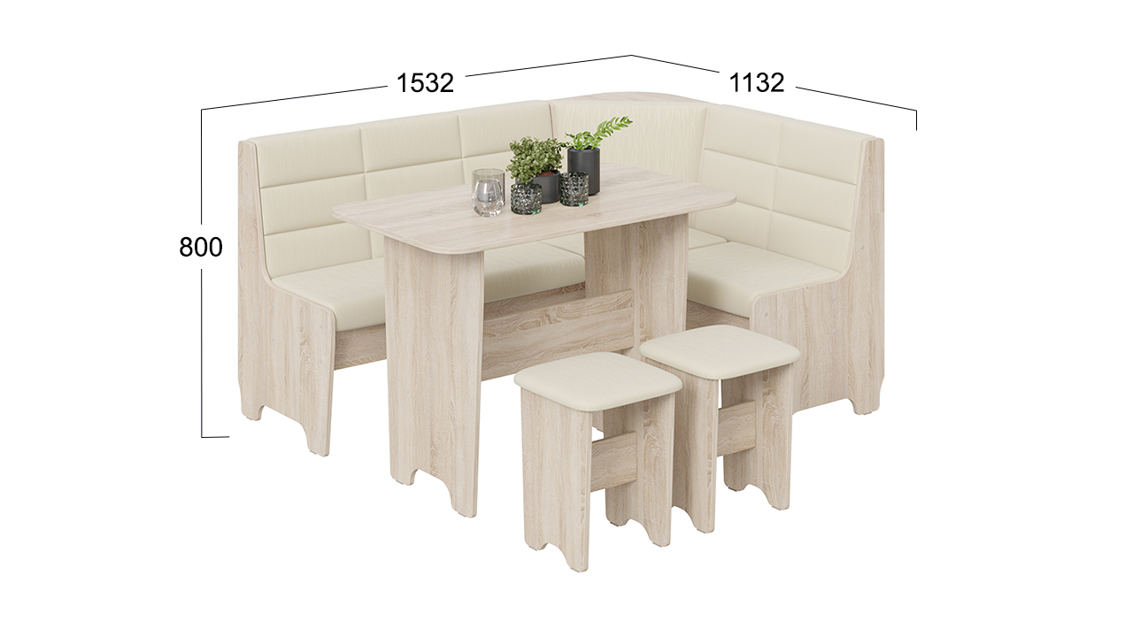 Кухонный уголок "Техас" Исп.2 - Крем (кашемир) / Дуб Сонома
