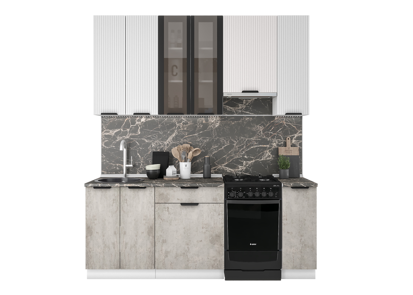 Модульная кухня "Норд Line" 2,0 м Н - софт пломбир/камень беж