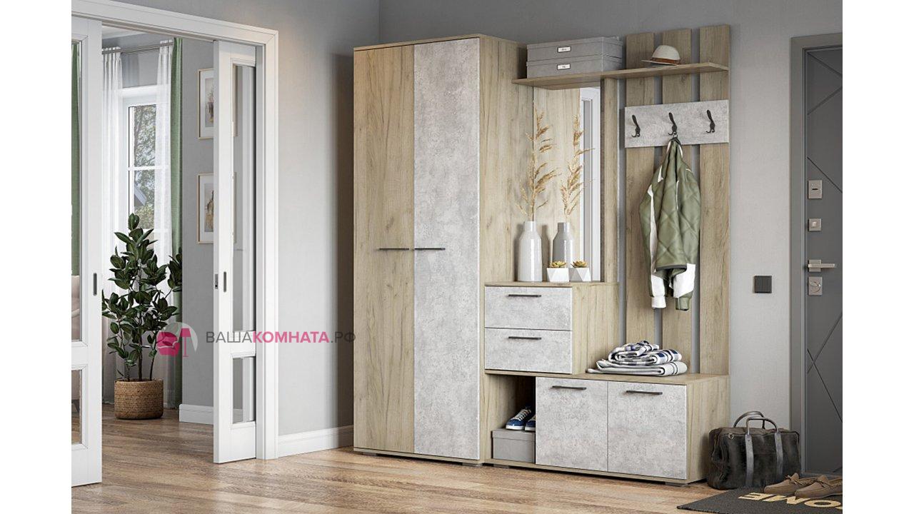 Модульная прихожая "Бостон" комплект №1 - Дуб крафт серый / Бетонный камень
