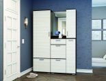 Эта полка с зеркалом и шкафчиком может использоваться в разных помещениях, например, в прихожей, в спальне или в гостиной. Она позволяет удобно разместить предметы на полочках, иметь возможность проверить свой образ в зеркале.