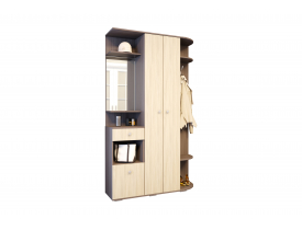 Прихожая "Домино" - отличный выбор для Вашего дома! Контрастные цвета, похожие на игру домино или на темный и белый шоколад, будут отлично выглядеть в прихожей. Удобство и функциональность конструкции не оставят Вас равнодушными: зеркало, шкаф для одежды, ящики и полки - как открытых, так и находящихся за распашной дверцей.