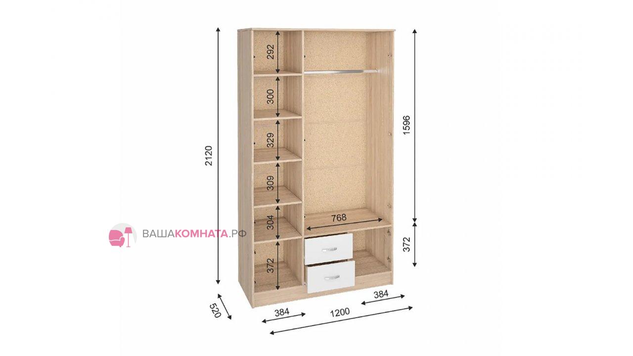 - удобство использования обеспечивается различными отделениями, полками и ящиками. Шкаф комплектуется горизонтальной штангой. Выдвижные ящики на роликовых направляющих;