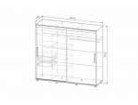 • Секция, выполняющая функцию антресоли, располагающаяся над вышеперечисленными секциями по всей длине шкафа, поделена двумя перегородками на три равные части шириной 645 мм. (Общий габарит секции Д.1966 х В.400 мм.).