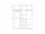 Шкаф-купе Комфорт №6М. Габаритные размеры изделия – Д.1596 x В.2180 x Г.541 мм., внутренняя, полезная глубина закрытая створками-купе составляет 490мм., закрытая распашными створками составляет 426 мм. Шкаф-купе по конструкции является комбинированным. Т.е. слева и справа размещены створки купе которые перемещаются по длине шкафа на однополозном верхнем треке и закрываю отделения для хранения верхней одежды. В центральной части шкафа-купе располагаются снизу три выдвижных ящика и выше две распашных створки. За двумя распашными створками находятся три ниши для хранения белья. - Отделения для хранения верхней одежды имеют по одной верхней полки и по одной штанги деревянной (материал - бук). Высота ниши над штангой составляет 380 мм. Длина штанги деревянной составляет 500 мм. Высота ниши со штангой составляет 1640 мм. - Центральная часть имеет три выдвижных ящика на роликовых направляющих. Максимальная допустимая нагрузка на ящики до 8 кг распределенного веса по всей площади ящика. Высота боковины ящика 106 мм, а максимальная высота хранения до 170 мм. Глубина ящика 400 мм. За распашными створками расположены три ниши для хранения белья высотой (в среднем) 380 мм и глубиной 426 мм.