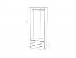 Это двустворчатая модель с распашными дверцами и двумя выдвижными ящиками внизу. Шкаф выполнен в современном стиле и имеет габаритные размеры. Доступная цена делает модель еще привлекательнее.