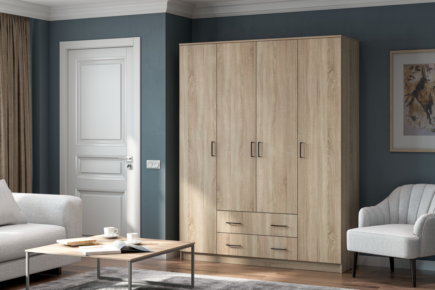 Шкаф четырехдверный "ШК-1" - Дуб золотой