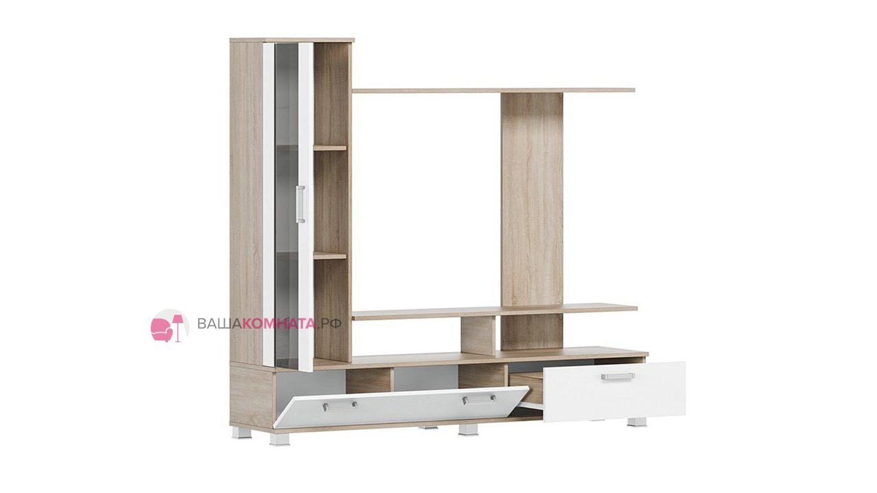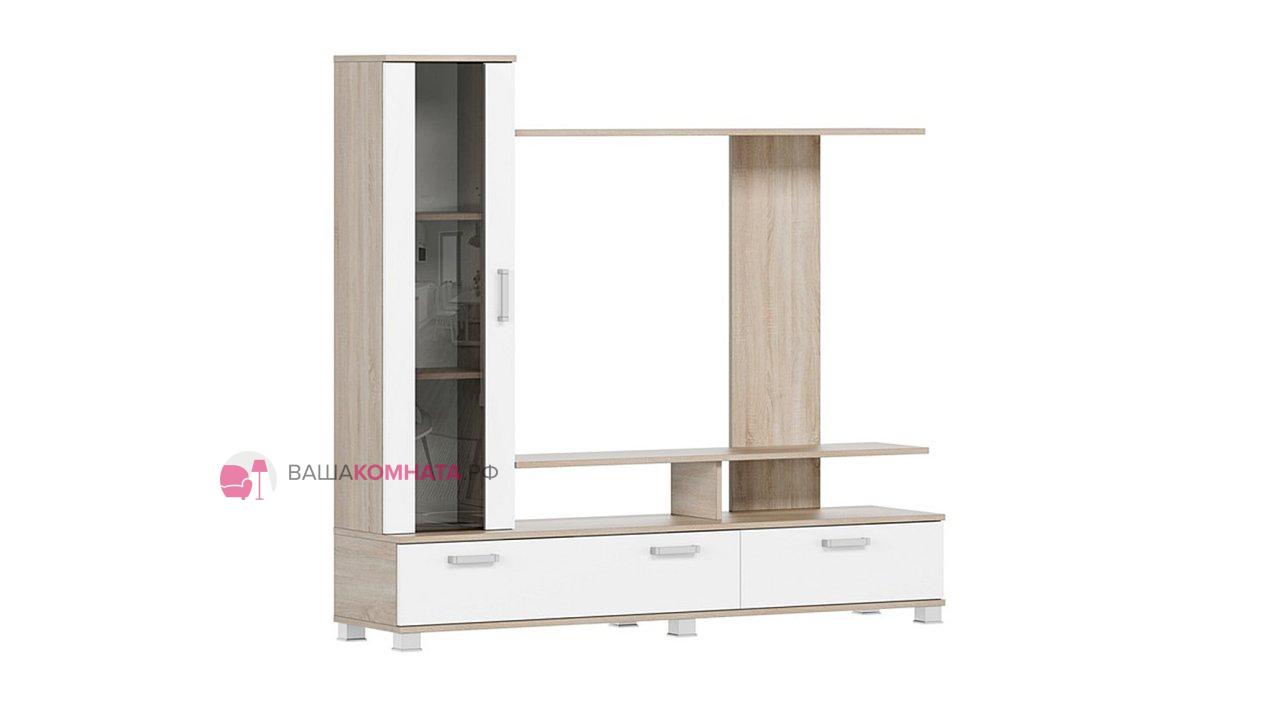 Стенка в гостиную "СОЛО-6" НМ - Дуб сонома светлый / Белый гладкий