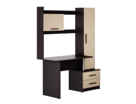 Уголок состоит из рабочего стола размером Д.1100 х В.760 х Г.586 мм., закрытого пенала размером Д.350 х В.1356 х Г.285 мм. , в котором удобно хранить документы и книги. Есть тумба размером Д.548 х В.442 х Г.480 мм. с двумя выдвижными ящиками на роликовых направляющих, благодаря чему процесс открывания ящиков будет проходить без лишних усилий. Дополнительным местом для хранения мелочей является верхняя закрытая полка, а рядом с ней на открытой полке можно расположить выставку достижений школьника. Во избежание нанесения травм, углы стола имеют скруглённые формы, поэтому он безопасен не только для подростков, но и юным пользователям. Данная модель имеет возможность собираться как на левую, так и на правую сторону.