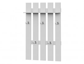 - Вешалка – Д.545 х В.1616 х Г.285 мм. Вешалка комплектуется двумя крючками трех рожковыми и двумя крючками двух рожковыми. Крючки крепятся по месту шурупами. В верхней части вешалки на высоте 1900 мм от пола расположена полка глубиной 266 мм. Под полкой расположена Г-образная штанга.